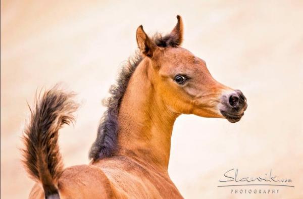 My Justice ist ein im arabischen Typ stehendes wunderschönes Hengstfohlen mit dunklem Auge und besticht durch sein feines schön gedishtes Köpfchen, tolle Halsung und was man jetzt schon sagen kann gutes Fundament.