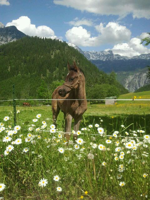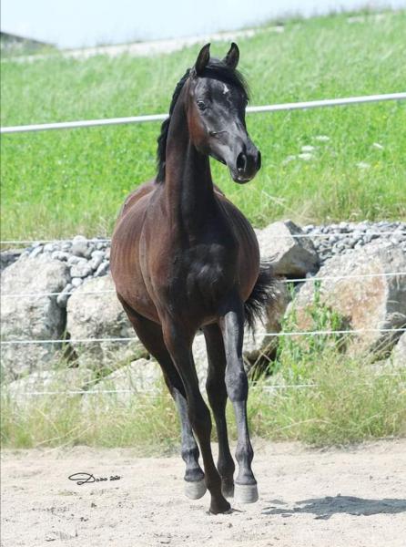 My Justice ist ein im arabischen Typ stehendes wunderschönes Hengstfohlen mit dunklem Auge und besticht durch sein feines schön gedishtes Köpfchen, tolle Halsung und was man jetzt schon sagen kann gutes Fundament.