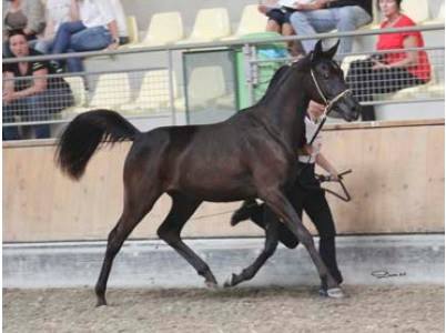 – Black mare with a great black line in her pedigree, including Simeon Sadik, Magic Magnifique, and Eluna Monpelou by Massimo ibn Mirokan
